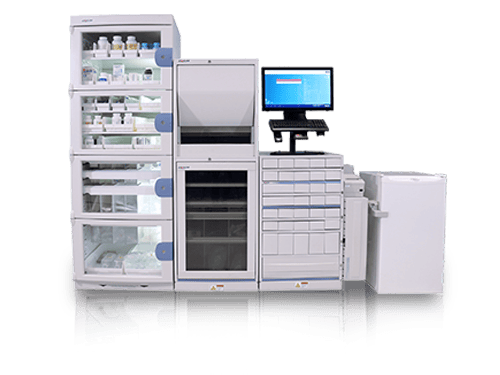 An automated dispensing cabinet (ADC) solution used in hospitals, long-term care, and pharmacy settings. It combines hardware (cabinets, drawers, external lock modules, towers) with software (dispensing, tracking, reporting) to manage distribution of medications at the point of care