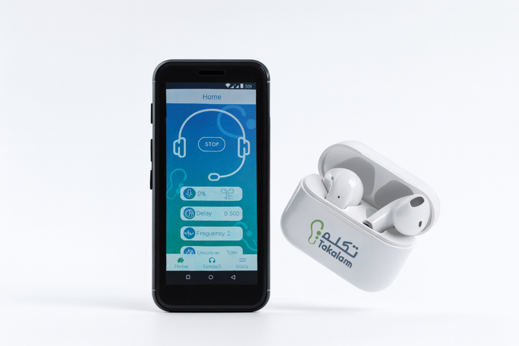 Takalam is a breakthrough wearable device that helps individuals who stutter speak more fluently. Using advanced auditory feedback based on the proven Choral Effect, it enhances speech flow and confidence in real time.